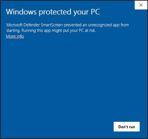 5. SmartScreen may display a warning if you are running Microsoft Defender: